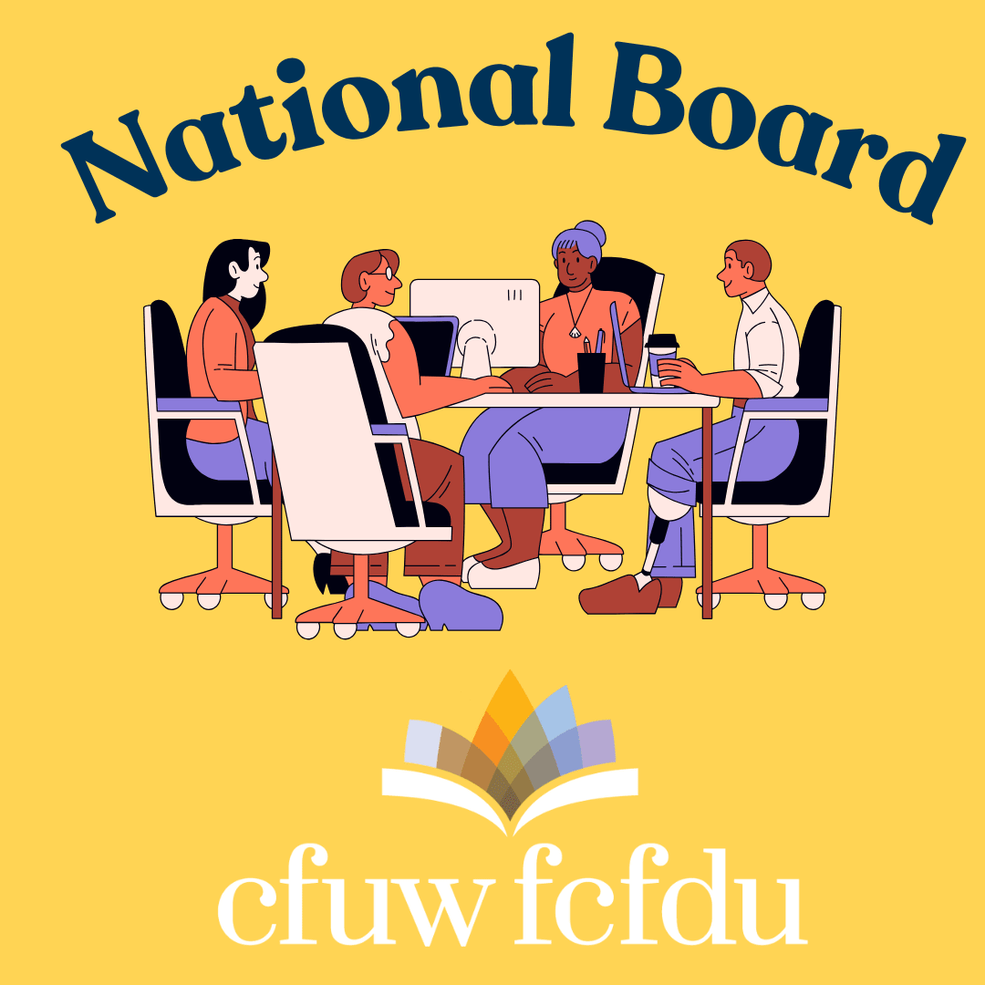 The Board of Directors provide leadership to the national federation. They are elected for a two year term (i.e. a biennium) and can serve on the Board for a maximum of six years. They meet regularly to discuss pertinent issues, pass motions, and provide general direction for the organization. The Board members also Chair and serve on CFUW Committees, and most provincial/regional VPs are Presidents of their respective Provincial or Regional Councils, with the exception of the VP Prairies